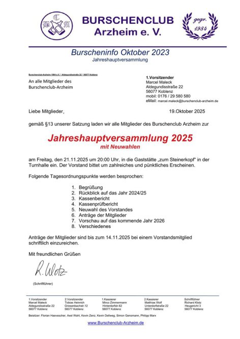 ‼️Der Burschenclub-Arzheim 1984 e.V. blickt nach vorne – mit euch!‼️